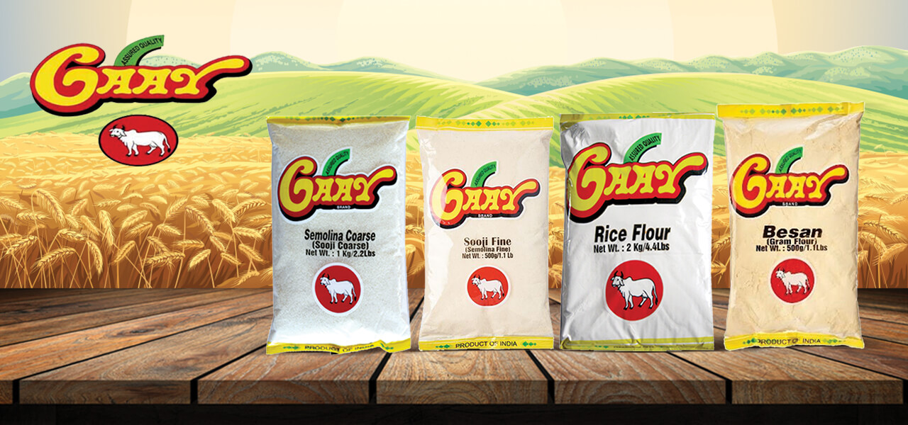 G’aay (COW), our iconic brand needs no introduction. G’aay (COW) is an emblem of our passion for flavor and commitment to quality. For decades, it has enriched the flavor of Indian cuisine. Today “G’aay Chhap” brand Products have become a demanding product name in the kitchens of India. G’aay Chhap Rice Flour, G’aay Chhap Coarse Besan, Gaay Chhap Jowar Flour, Gaay Chhap Bajri Flour, Gaay Chhap Corn Flour and Uttam Atta from Ahmedabad.